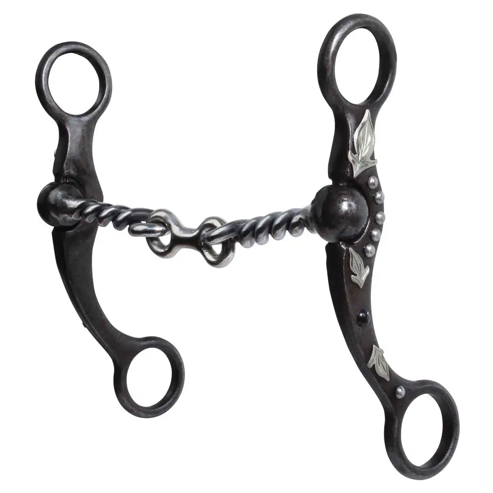 This weighted cheek allows for more control and added poll pressure while maintaining clean lateral movement. The cheek pieces are polished steel with decorative silver and black designs.Â