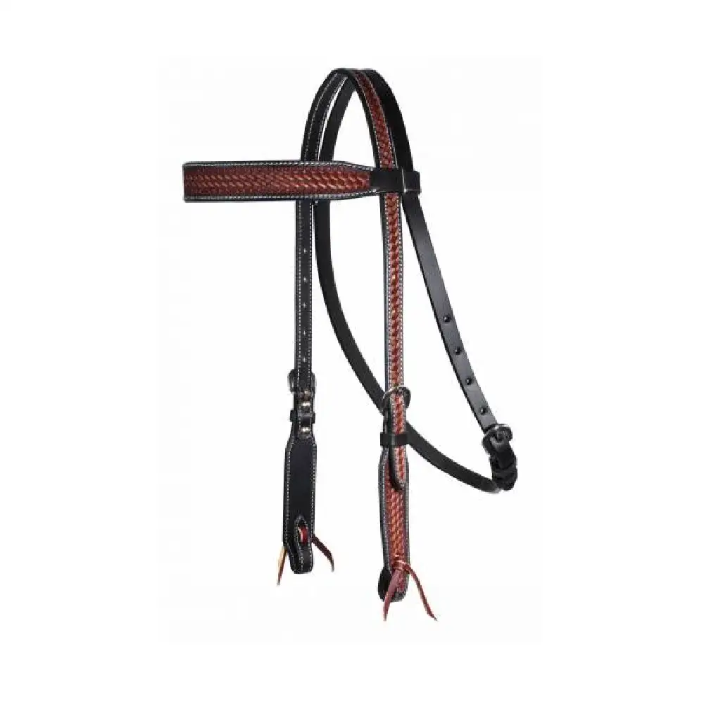 This versatile collection will be at home in almost every discipline. Hand tooled chestnut brown with a black border.