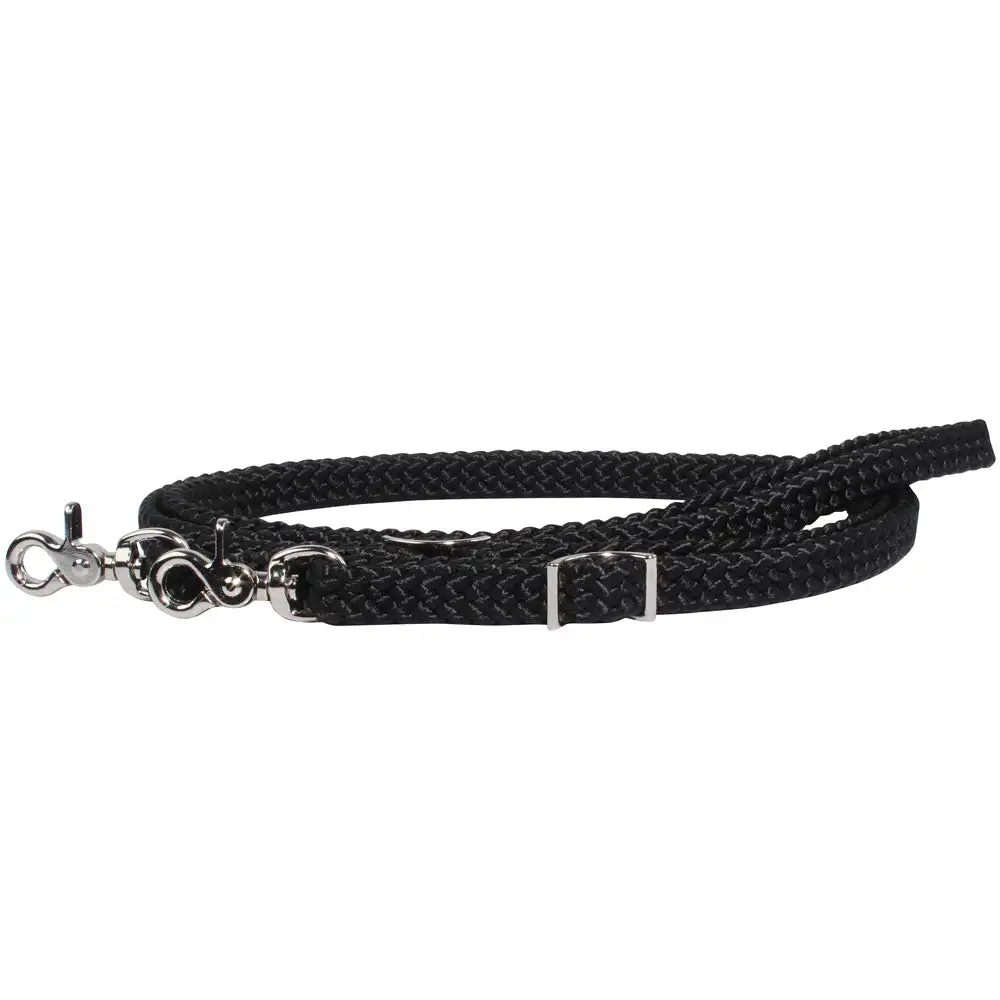 Our USA made polypropylene flat braid roping rein has a good feel and secure grip under any conditions. 5/8″ wide, 8 ft. long with 2 nickel plated snaps and conway buckles
