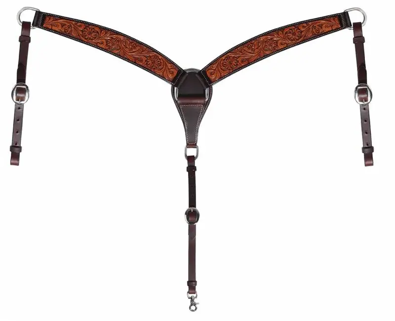 Beautifully hand tooled floral and leaf Prairie Flower design accented with stitched chocolate edge.