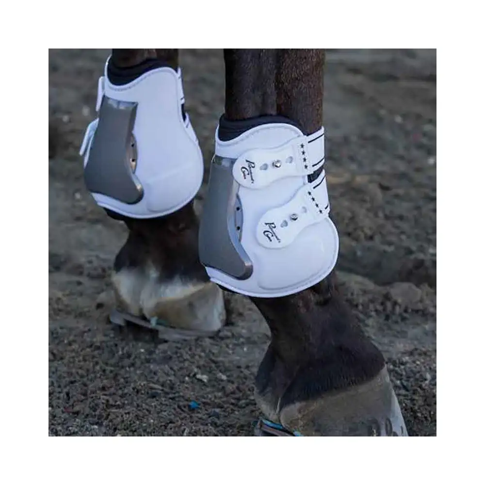 These boots feature a ventilated dual hardness outer shell which is designed to dissipate energy when the strike area is hit. The shock absorbing air cushion fits in an anatomically shaped strike area, reducing the force of impact and then returning to its original shape. Features an adjustable and durable TPU fasteners. Perfect for both schooling and the show ring. Sold in Rear Pairs.
