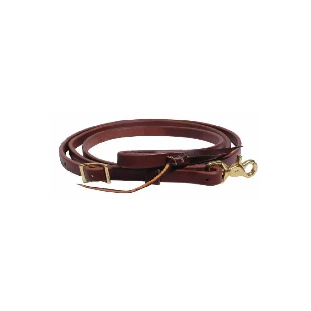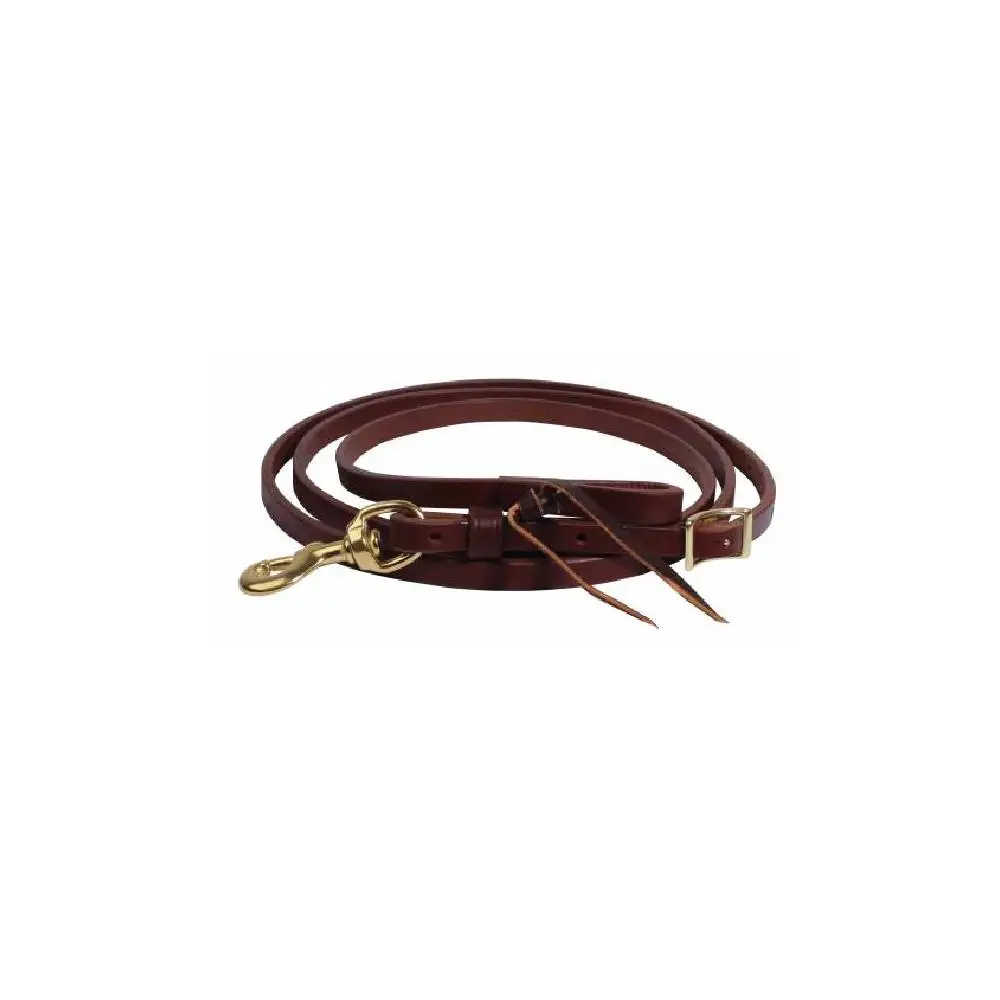 Single brass snap and conway buckle adjustment, 7′ plus length. Available in 2 widths, 1/2″ with bolt snap or 5/8″ with scissor snap.Â