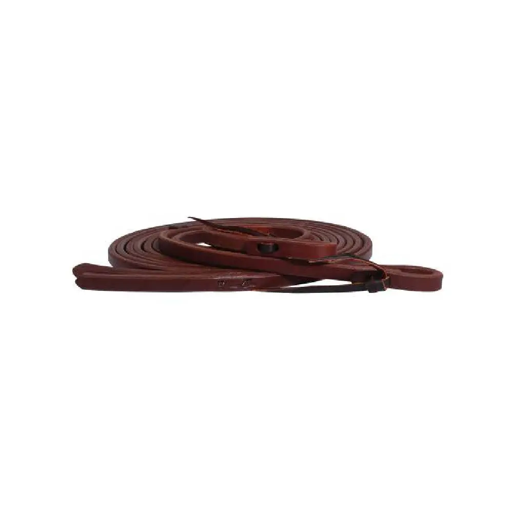 Our heavy Ranch top-grain harness leather reins have a special, heavy oil dressing applied to give a great feel from the first ride and years to come. Maximum weight in the tails for good rein balance. 7′ plus length available in 3 widths. Made in the USA.
