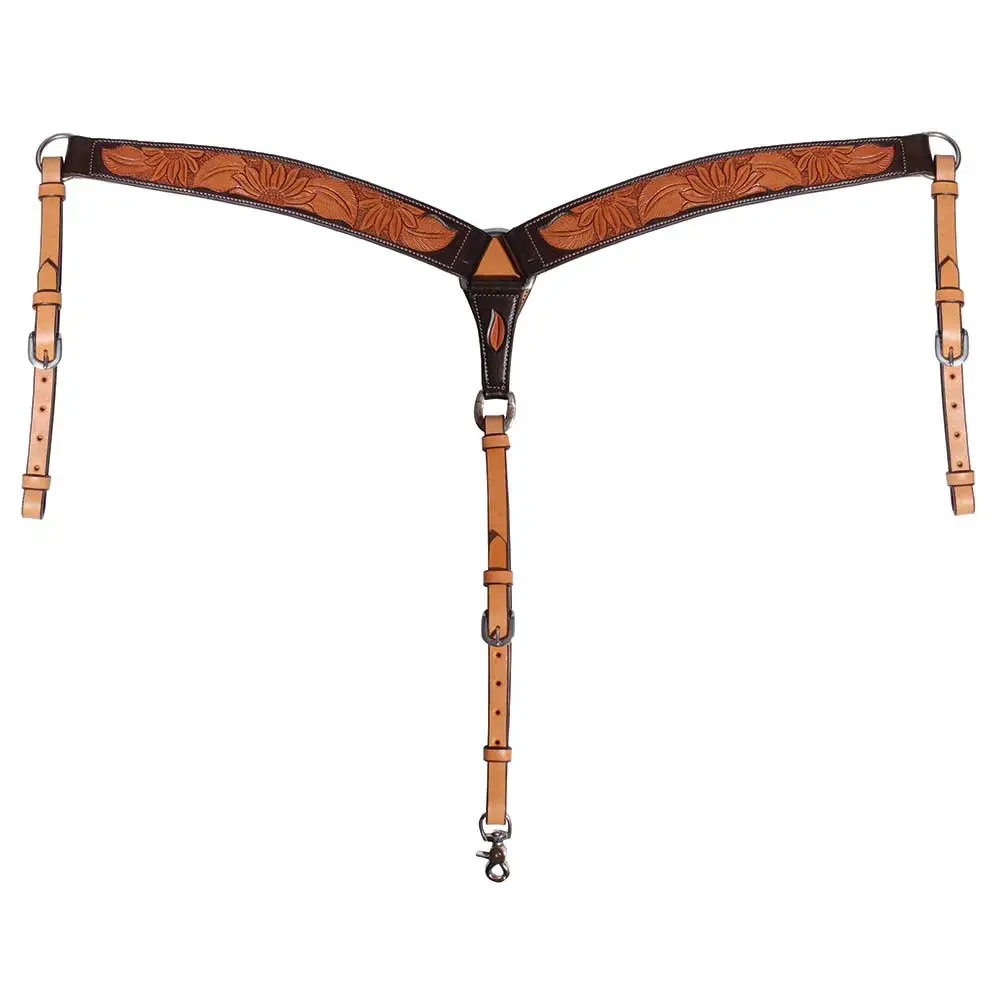 Pictures cannot do justice to the exclusive PC designed sunflower tooled pattern in this collection. Rich chocolate-colored leather and natural tooling will be a standout on any horse. Features stainless steel hardware. 2″ Wide.