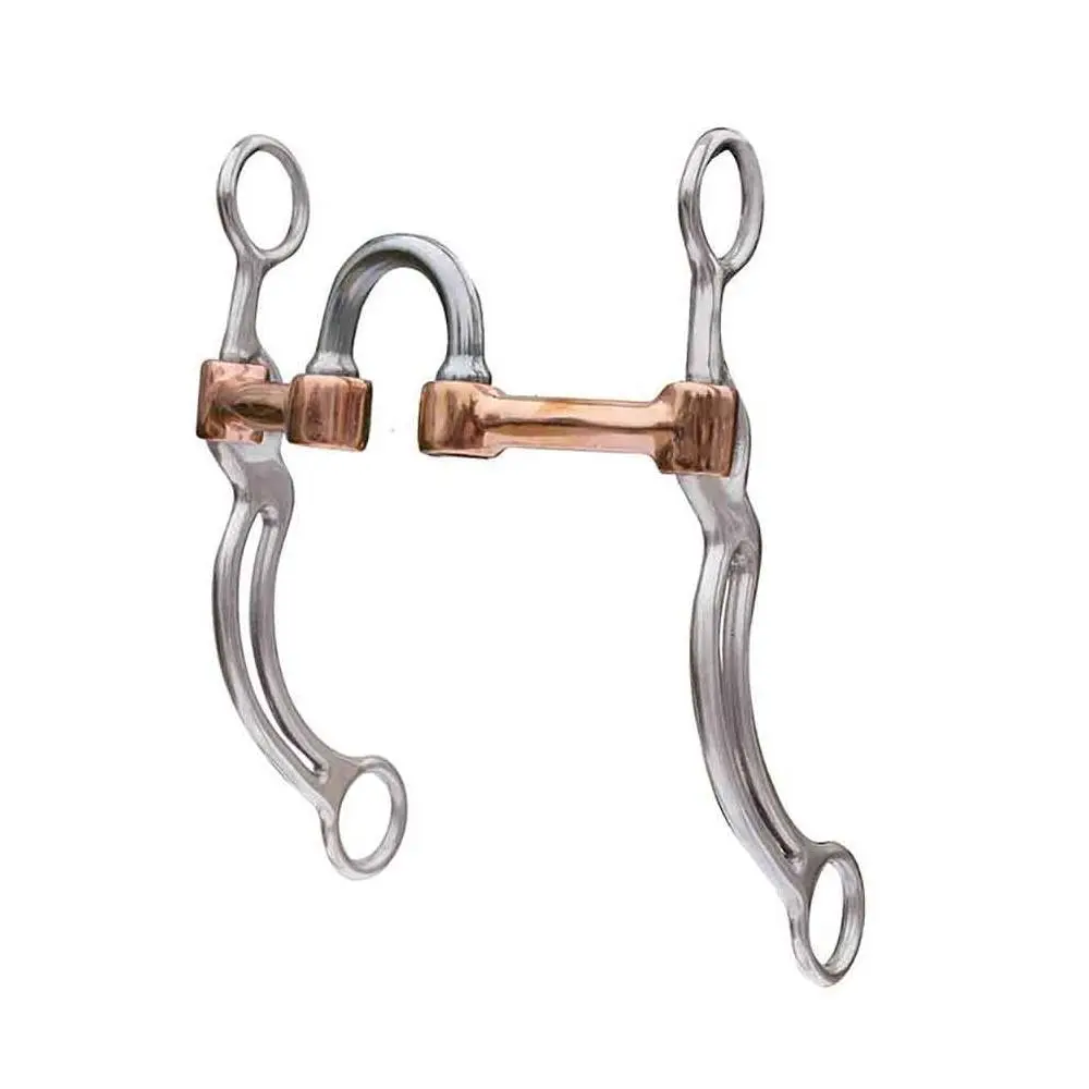 Correction mouthpiece has 4 moving parts that allow the horse to respond to subtle rein pressure, reducing heavy rein handling. Copper bars keep the horse’s mouth moist.